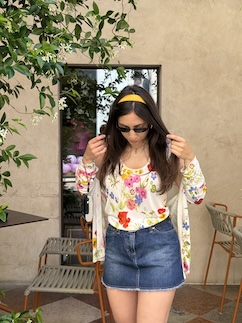 Un classico senza tempo, completo Blumarine, smanicato e cardigan dai motivi floreali